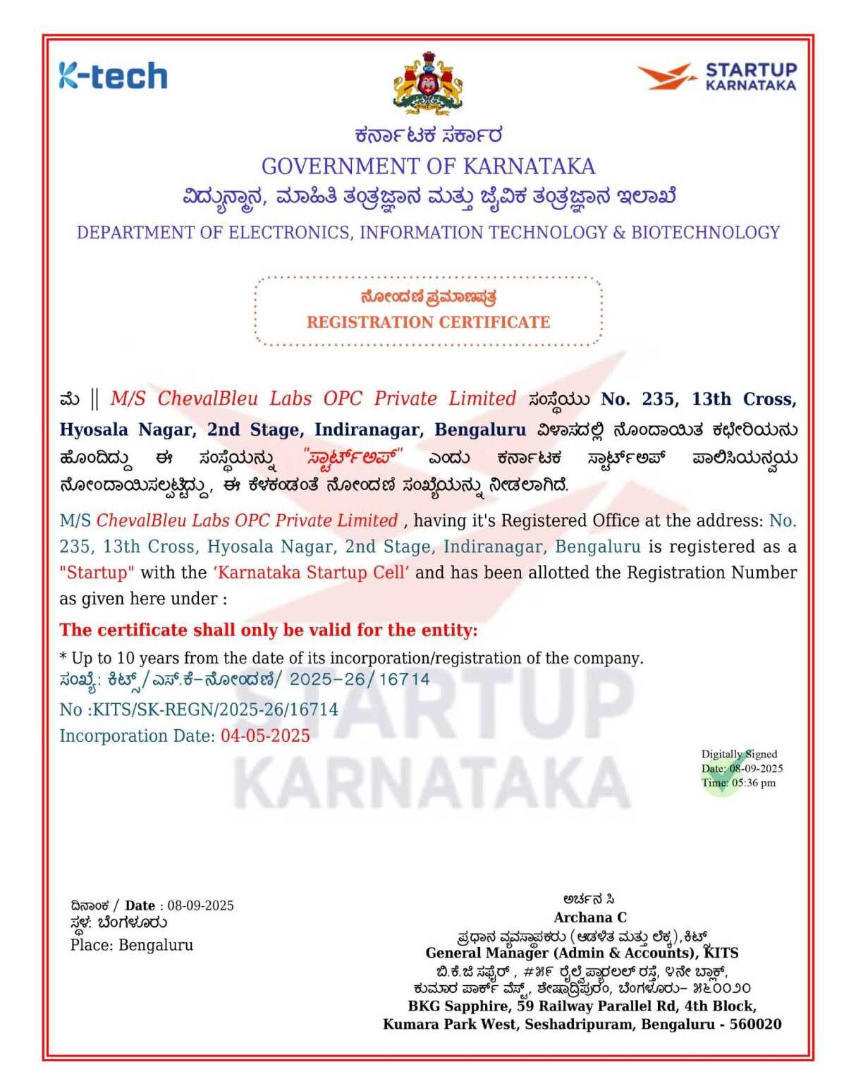 Karnataka Government Startup Certified